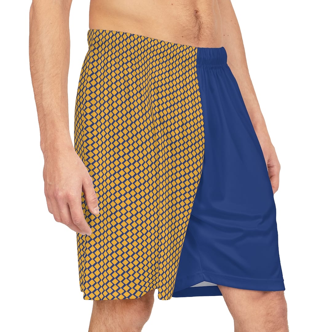 Basketball Shorts – Gold Diamonds on Blue